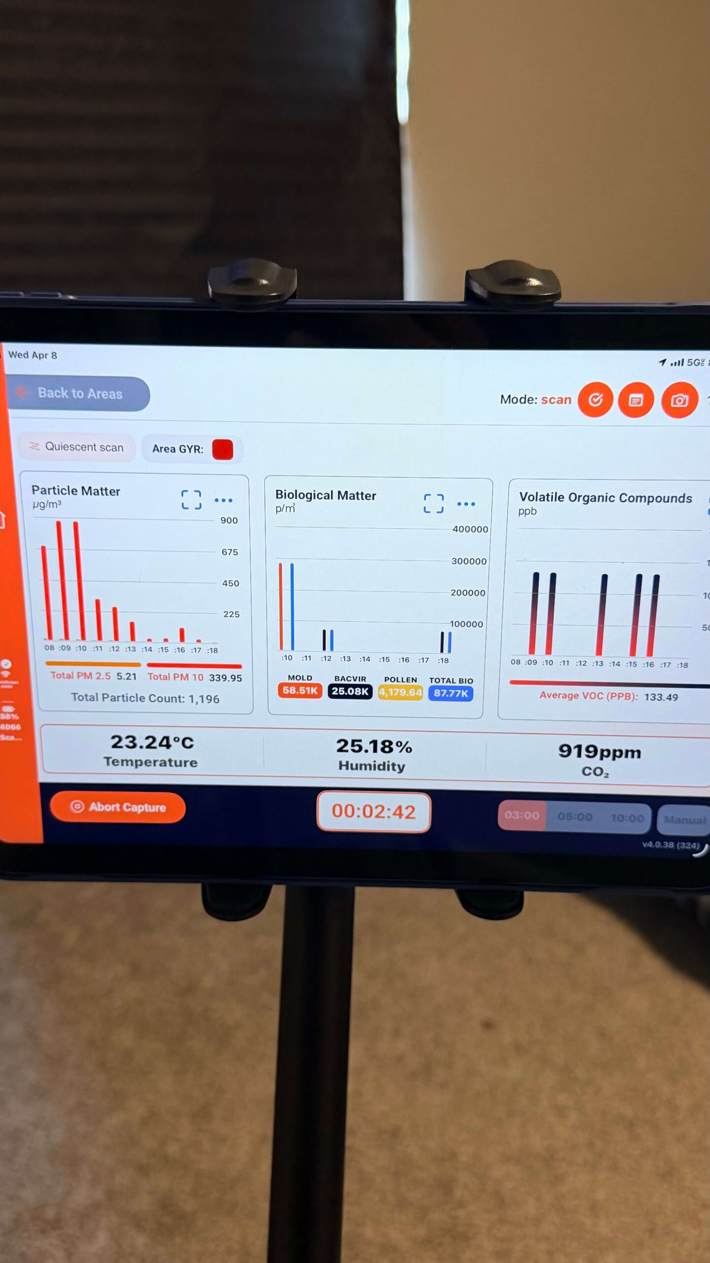 This thorough approach not only ensures more accurate air quality evaluations but also equips Future Vision Environmental to recommend solutions tailored to your unique environment. Clients can actually watch mold spore levels rise and fall during the scan, providing transparency and peace of mind throughout the process. With InstaScope, you receive immediate, clear, and actionable insights to help you breathe easier and live healthier. provide only static samples and often rely on subjective interpretation; InstaScope scans every room in its entirety, delivering objective results.